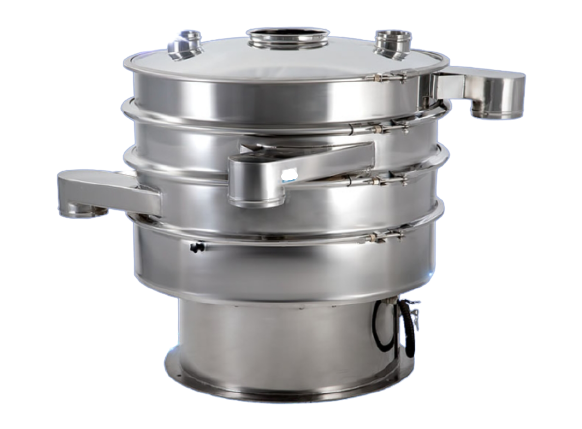 圓形振動篩是一種高精度細(xì)粉篩分設(shè)備,其噪音低、效率高,快速換網(wǎng)需3-5分鐘,全封閉結(jié)構(gòu),適用于粒、粉、粘液等物料的篩分過濾。圓形振動篩是由直立式電機(jī)作為激振源,電機(jī)上、下兩端安裝有偏心重錘,將電機(jī)的旋轉(zhuǎn)運動轉(zhuǎn)變?yōu)樗健⒋怪?、傾斜的三次元運動,再把這個運動傳遞給篩面。調(diào)節(jié)上、下兩端的相位角,可以改變物料在篩面上的運動軌跡。